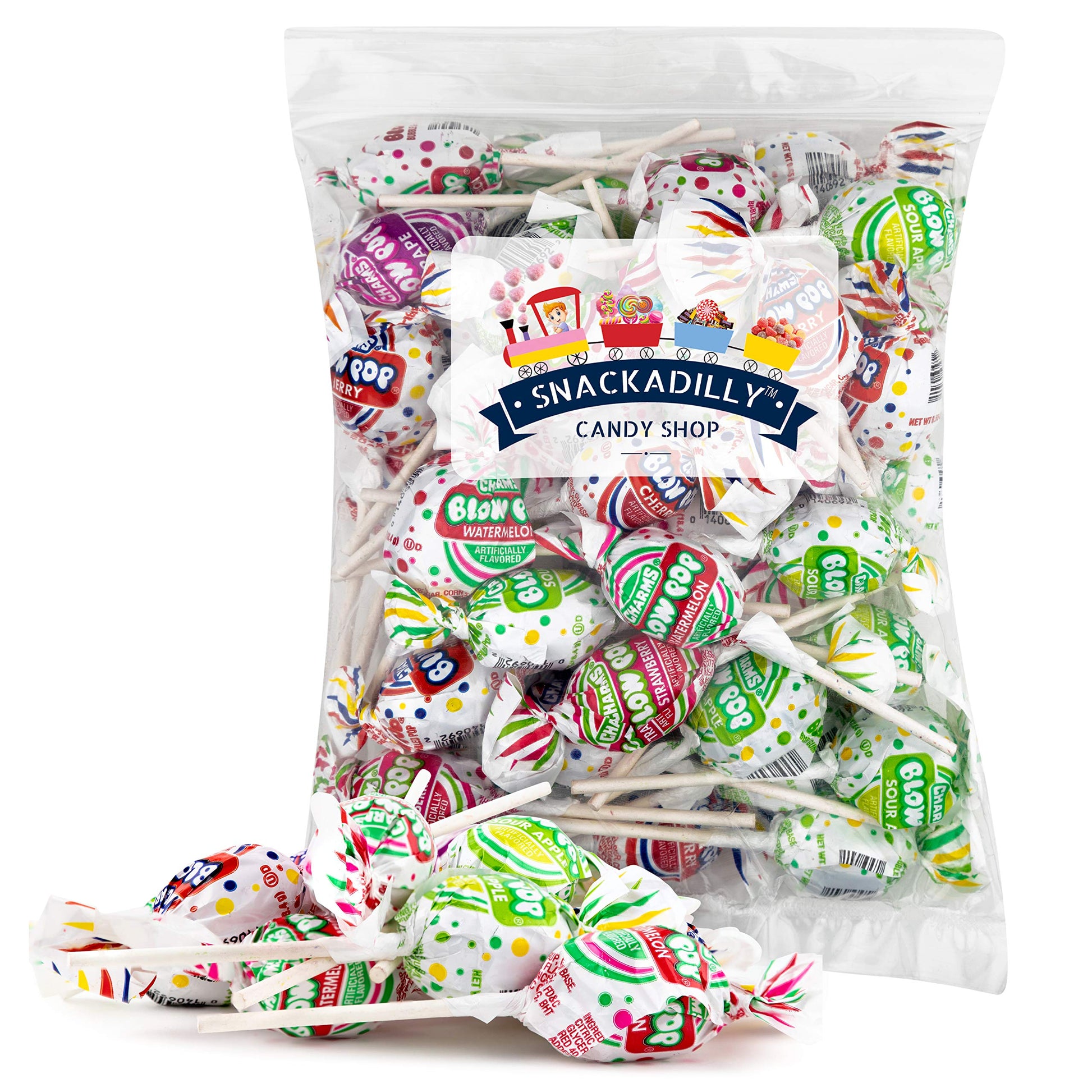 Blow Pops Bulk 3 Pound Bag - Grape, Strawberry, Cherry, Watermelon, and Sour Apple flavors By Snackadilly